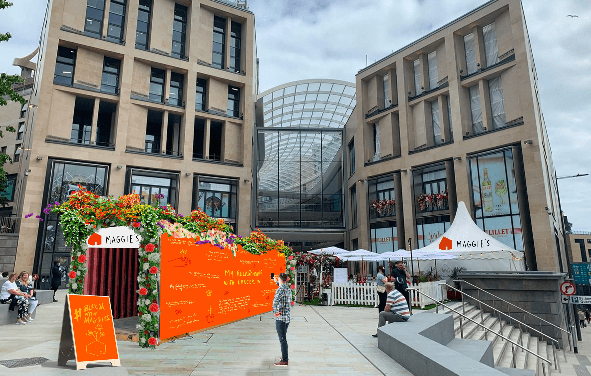 Los voluntarios venderán flores con etiquetas promocionando los muros adornados y la misión de Maggie’s. También regalarán flores directamente como obsequios, sirviendo como metáfora de la misión de Maggie’s. Además, estará disponible la opción de enviar flores digitales.