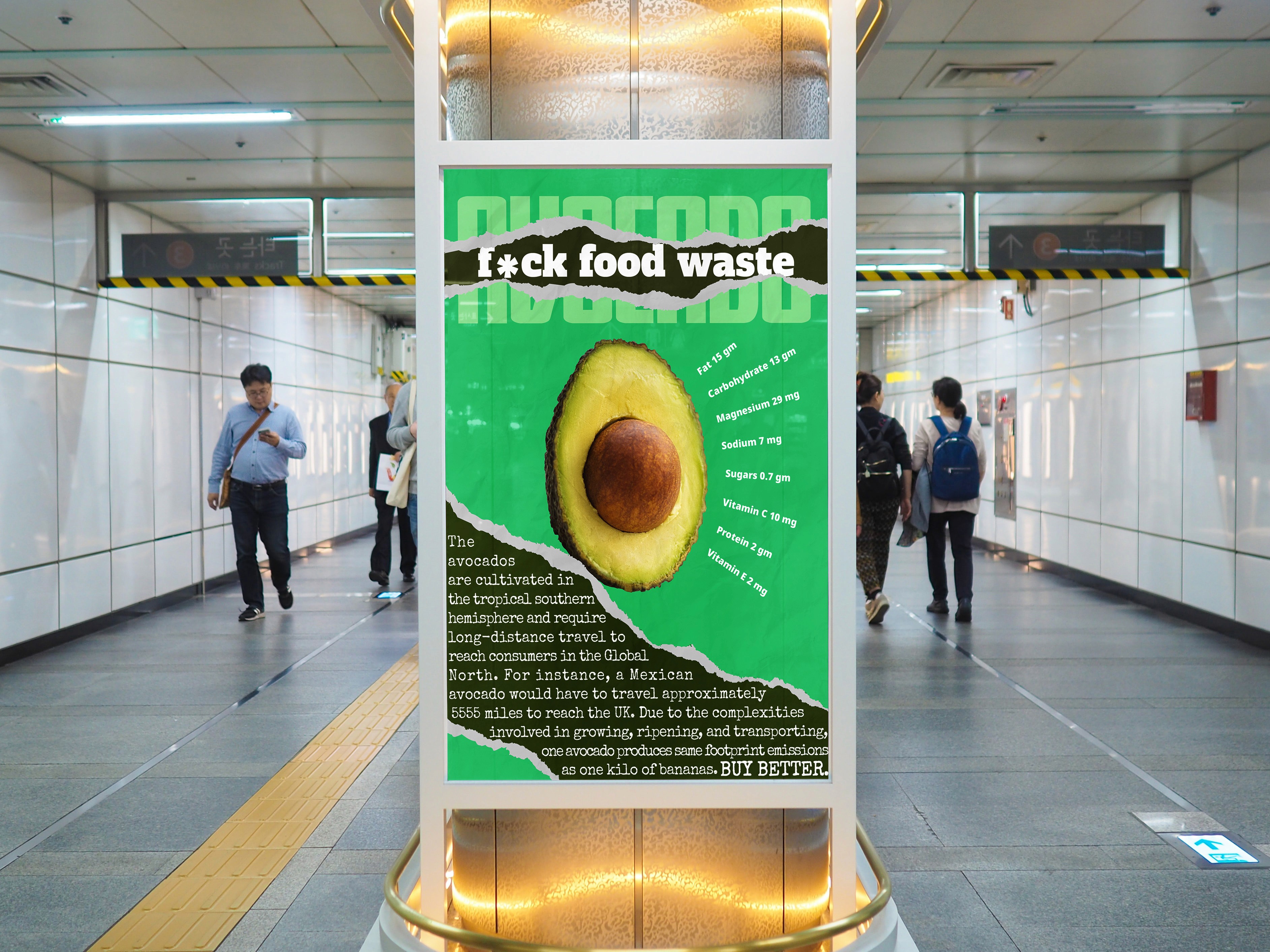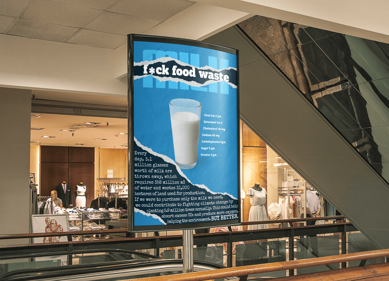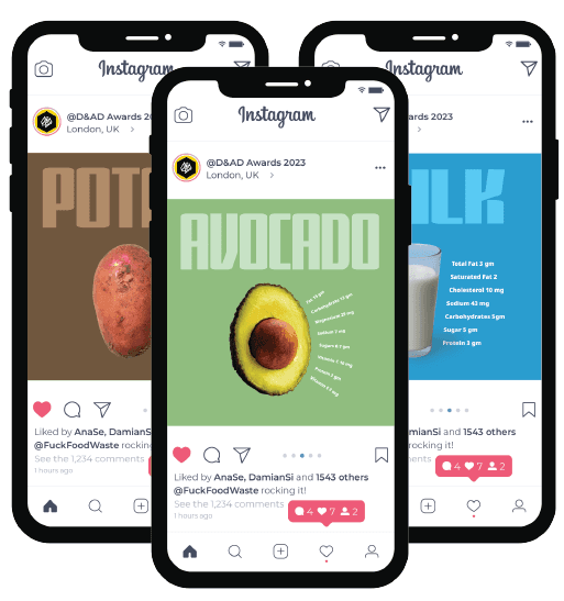 Google Fonts y HMCT nos encargaron crear una campaña para promover un cambio social positivo utilizando tipografías atractivas de la biblioteca de Google Fonts y los recursos de HMCT. Al explorar algunos problemas medioambientales, decidimos centrarnos en el desperdicio de alimentos. Durante nuestra investigación, descubrimos que los aguacates, la leche y las papas están entre los productos más desperdiciados en el Reino Unido, sirviendo como ejemplos perfectos para ilustrar la dualidad entre la belleza superficial y la devastación ambiental.